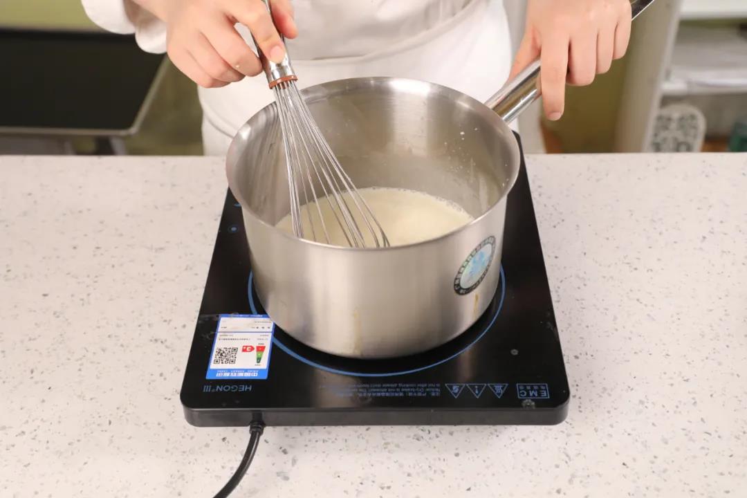 牛奶、糖、玉米淀粉、淡奶油混合均勻,