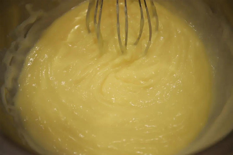 再加入低筋粉、高筋粉、玉米淀粉、鹽過篩并混合均勻,