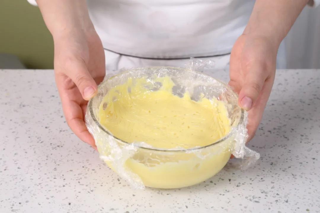 分次加入混合均勻,表面貼保鮮膜,冷藏備用;