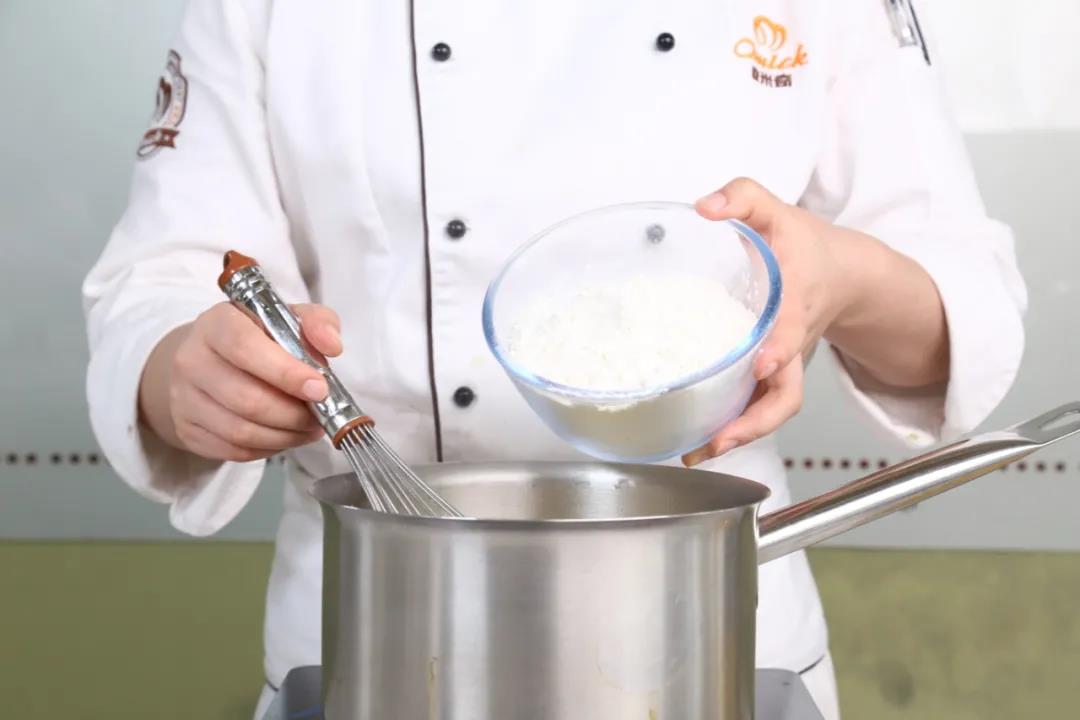 進行加熱煮開,倒入過篩后的低粉攪拌均勻,