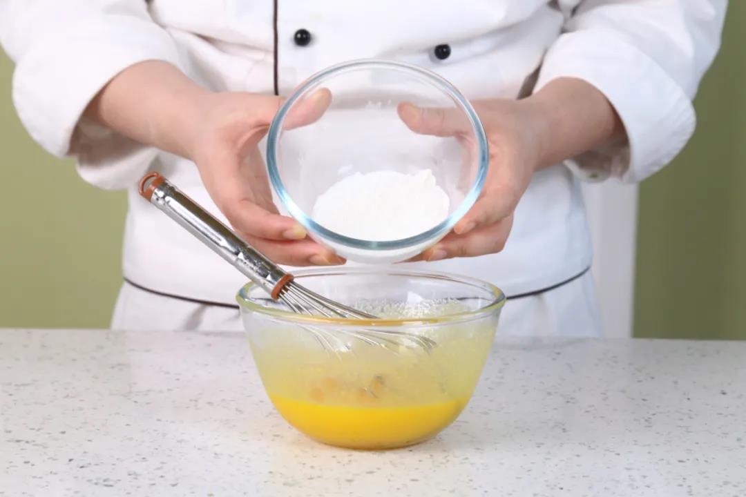蛋黃、糖、低粉、玉米淀粉混合均勻