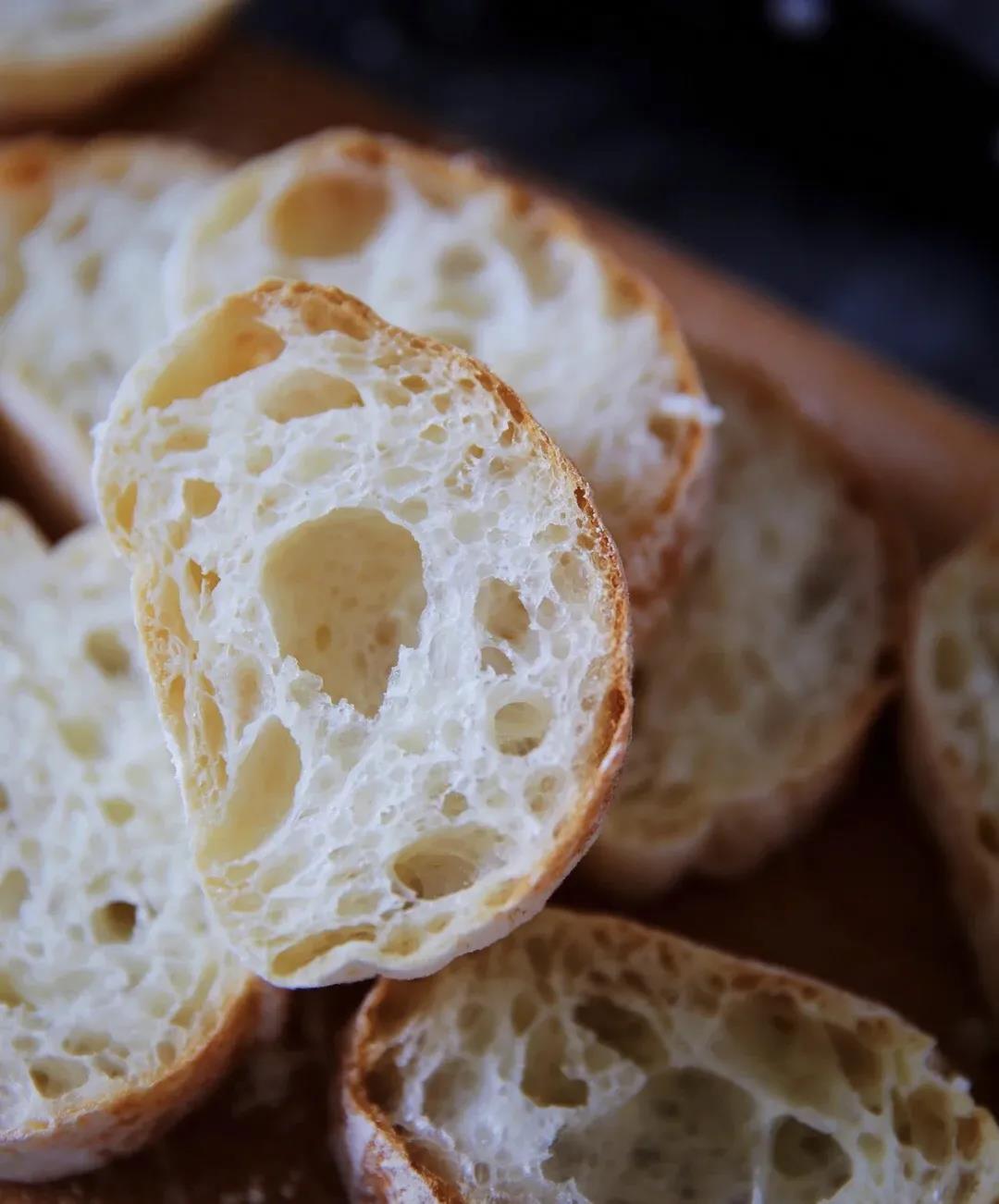使用經(jīng)過(guò)長(zhǎng)時(shí)間低溫發(fā)酵的“液種”制作而成,面包的組織有著大小不一的光澤孔洞,外脆內(nèi)軟的微酸口感越嚼越香 傳統(tǒng)的吃法是沾橄欖油+意大利香脂醋。歐洲人也常常在該面包中加入奶酪、肉制品、蔬菜等制成美味可口的三明治。
