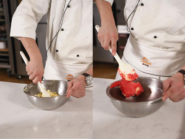 2.卡仕達(dá)醬分兩次加入,攪拌至無(wú)顆粒狀。
