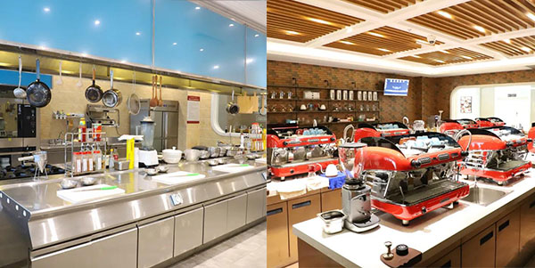 杭州歐米奇使用高比等國際一流的烘焙設(shè)備、國內(nèi)先進的西點、西餐、咖啡和調(diào)酒的實訓(xùn)教室,直接模擬未來的工作場景,同步企業(yè)后廚、烘焙店,讓學(xué)生畢業(yè)后跳過適應(yīng)期,直接上灶操作。